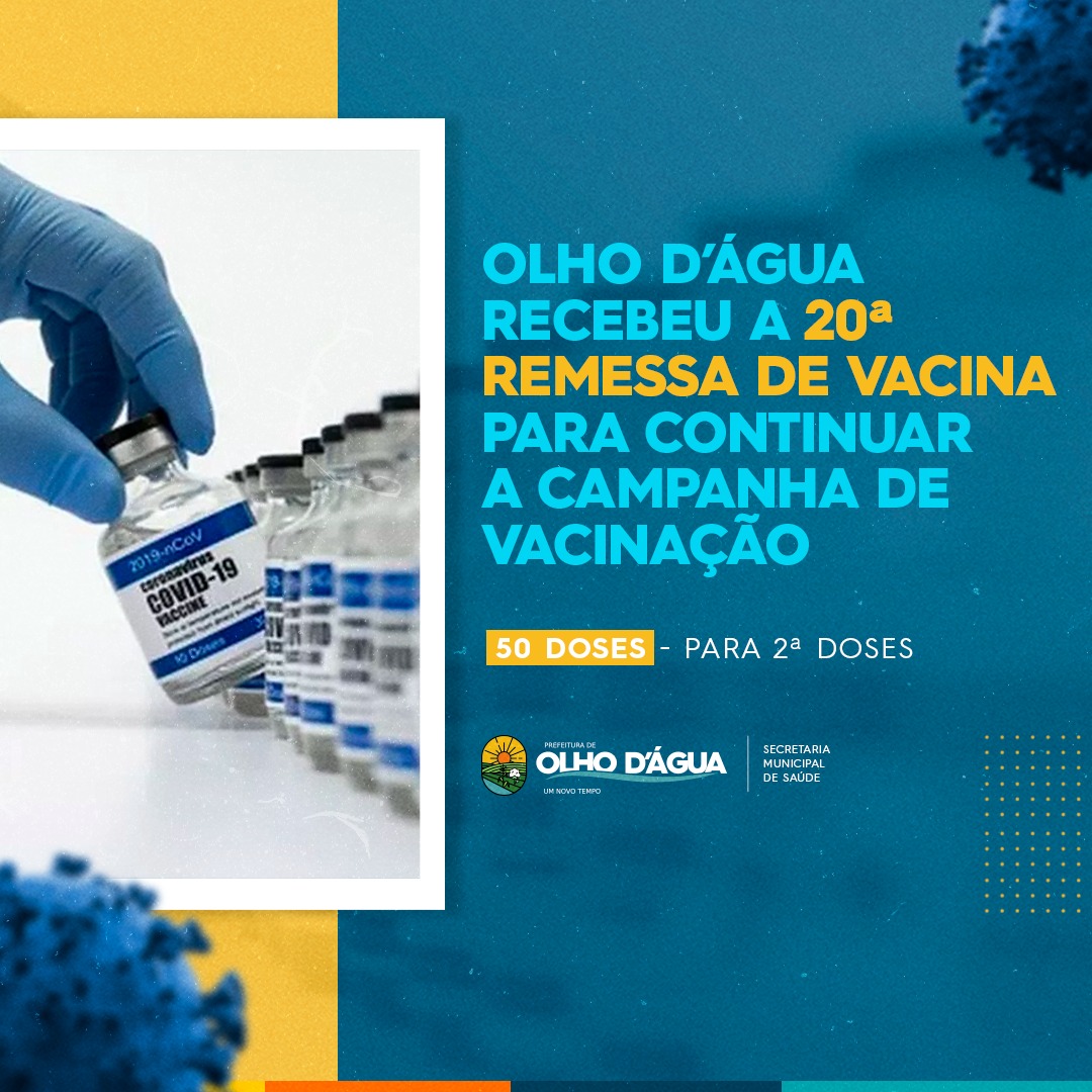 A Prefeitura Municipal de Olho D'água recebeu a 20ª remessa de vacina para continuar a campanha de vacinação. Vamos juntos vencer o Covid/19!