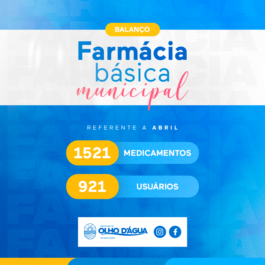 A Farmácia Básica Municipal mantida pela Prefeitura Municipal de Olho D'água através da Secretaria de Saúde, divulgou nesta terça-feira (02) o balanço de entrega de medicamentos em abril de 2023.