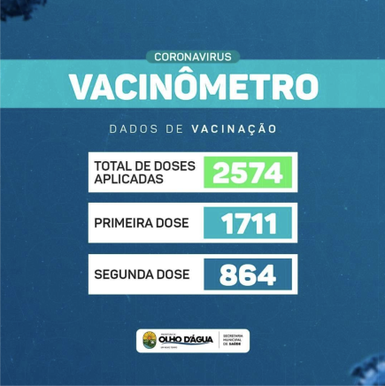 Confira o Vacinômetro do munício de OIho D'água, ao todo já foram aplicadas 2.574 doses!
