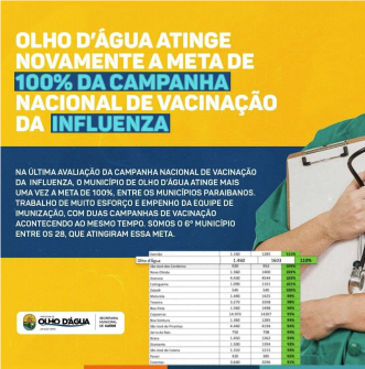 Olho D'água atinge novamente a meta de 100% da campanha nacional de vacinação da influenza. Confira!