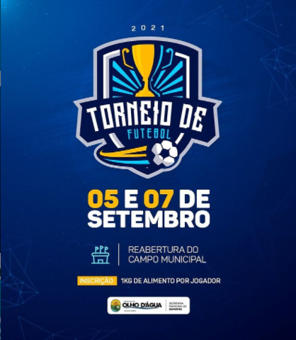 O Torneio Municipal de Futebol / 2021 já tem data para acontecer em Olho D'água, o evento será realizado nos dias 05 e 07 de Setembro e contará com a reabertura do campo municipal.